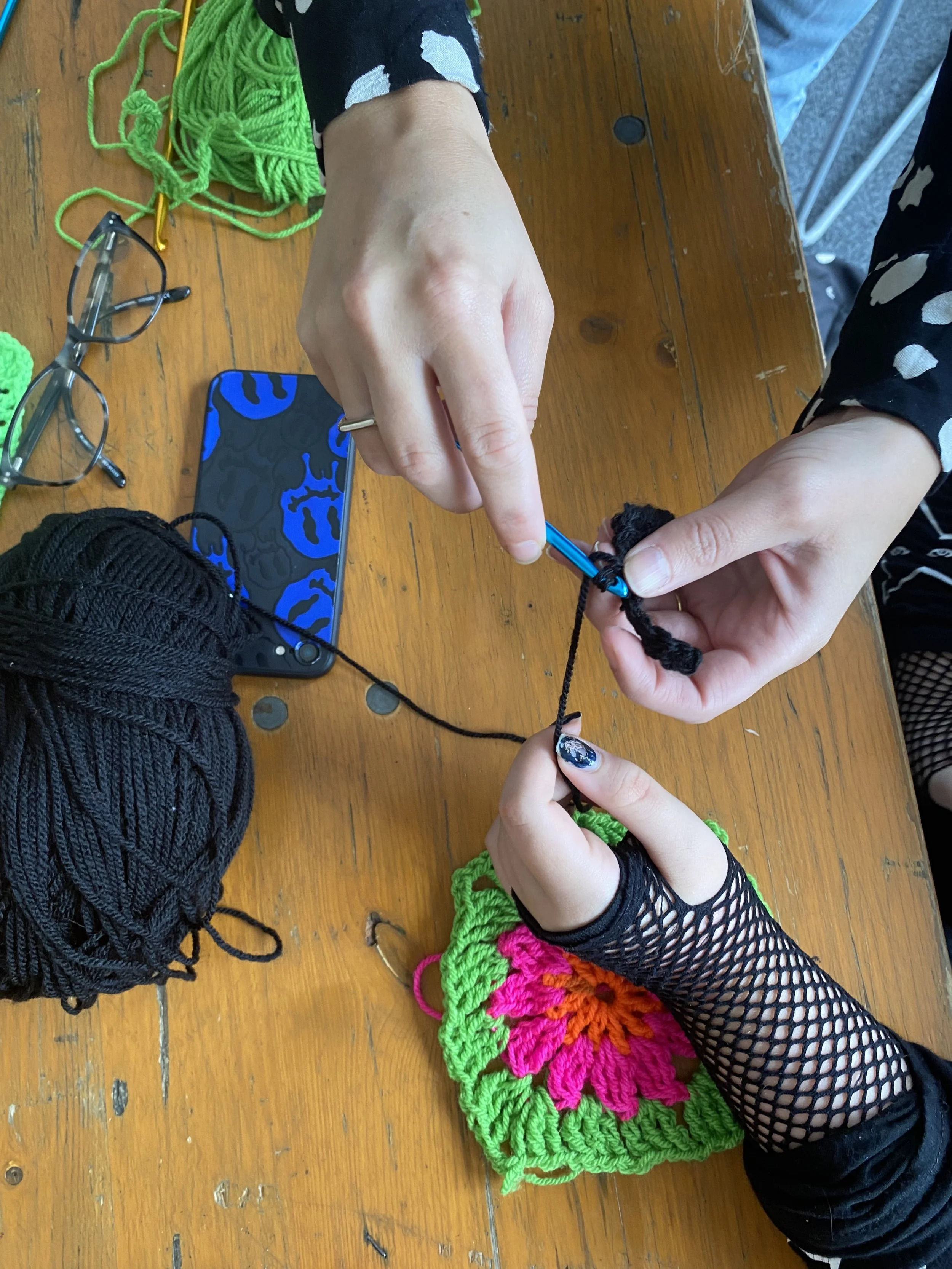 A series of workshops for young people aged 10-15 currently not attending school. Our work promoted creativity for wellbeing and supported young people to learn and share their crochet skills in a supportive environment at The Hive in Ipswich.
